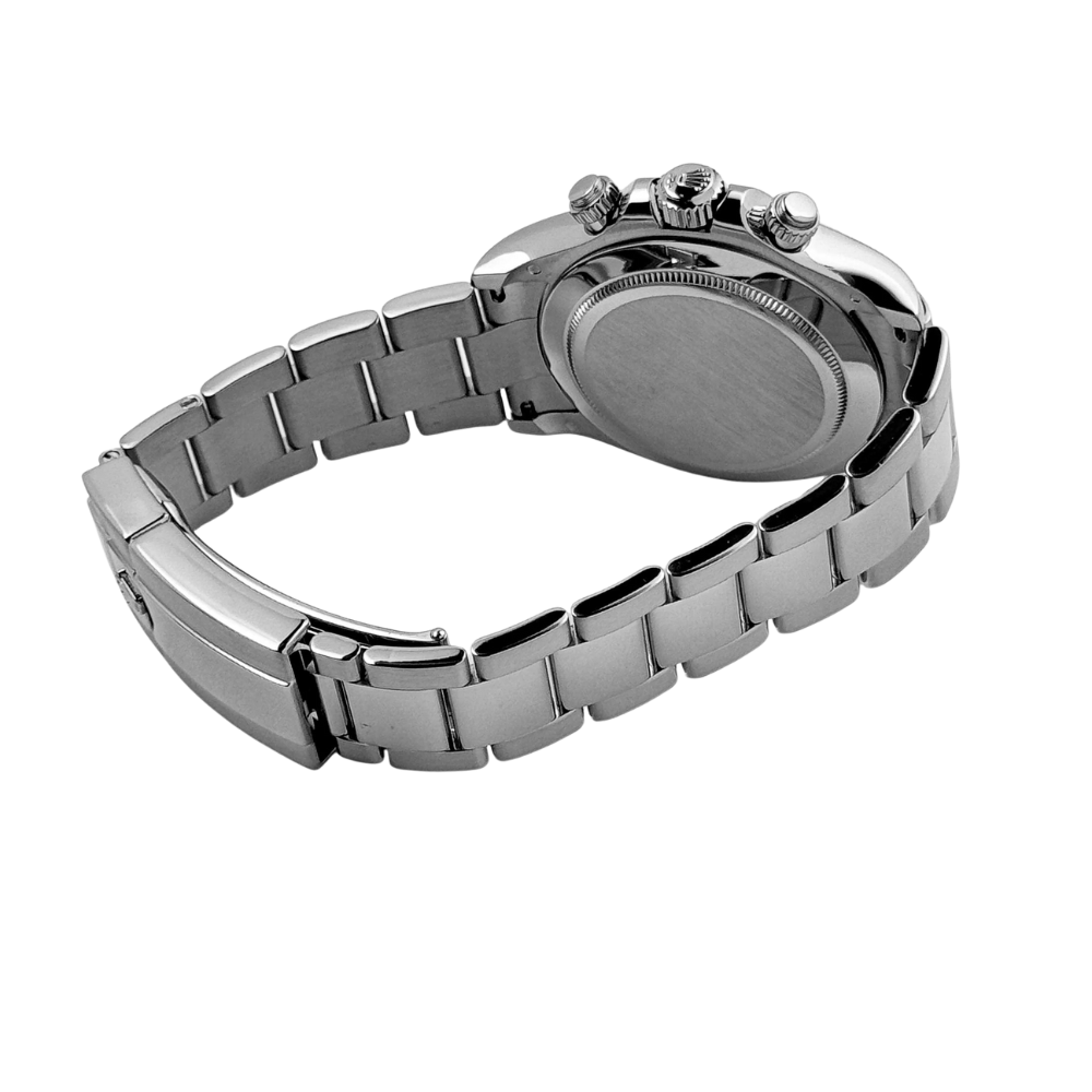 - Caliber: Rolex Calibre 4130 — self-winding mechanical chronograph movement entirely developed and manufactured by Rolex.