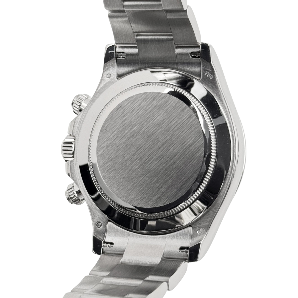 The Rolex Cosmograph Daytona Ref. 116509 in 18 ct white gold with blue sunburst dial is an exquisite expression of Rolex’s racing heritage and modern luxury. Combining the technical prowess of the Daytona chronograph with the discreet brilliance of white gold, this reference captures both speed and sophistication — a timepiece engineered for champions yet crafted for collectors.