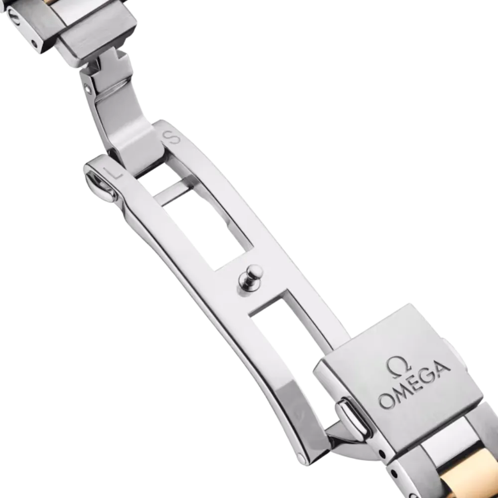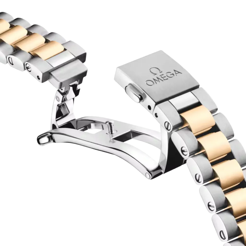 Bold yet precise, the Aqua Terra 30 mm Black/Sedna™ marries Omega’s METAS-certified precision and 150 m sealing with accents of luxury gold — a compact timepiece for those who prefer elegance with contrast.